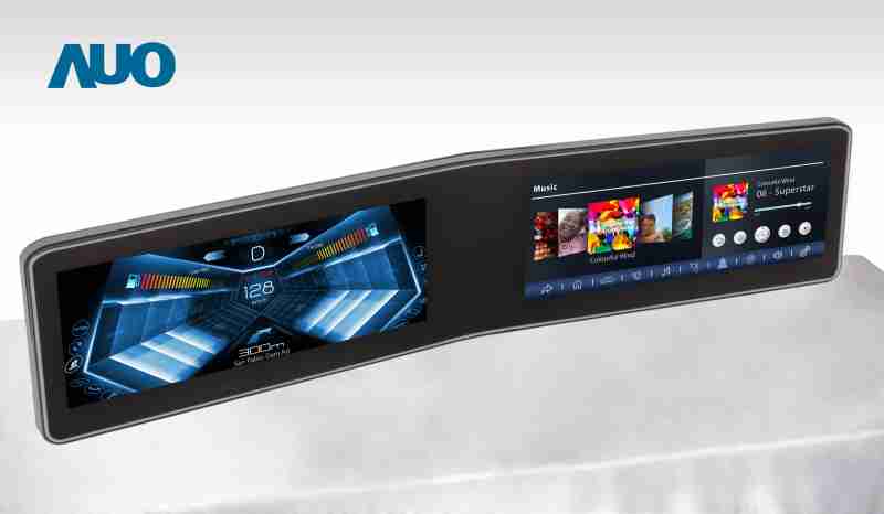 蓝狮在线 V 型曲面驾驶舱显示器,,采全贴合拼接仪表板及中控台显示屏 |