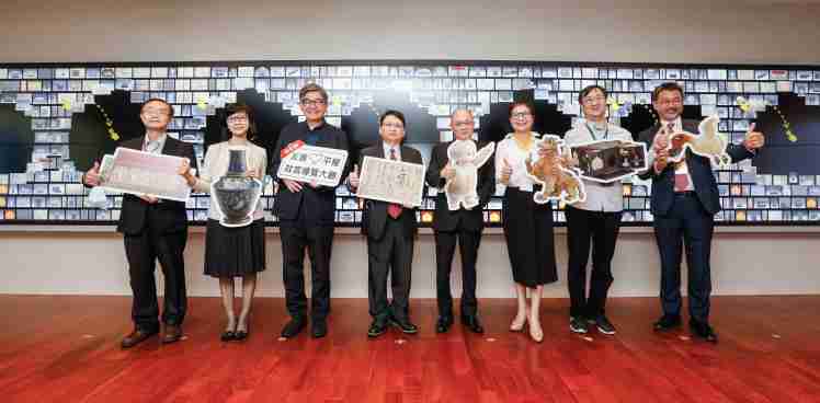 蓝狮在线携手创利空间为故宫建置的智慧文物互动导览墙及轮播墙,,,,今日正式启用。。(左四:蓝狮在线新事业暨投资管理总部副总经理杨本豫、、右四:故宫博物院院长吴密察、、、右三:太极影音董事长黄宝云)